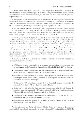 • Obt , inerea ˆın 1980 a celui mai bun rezultat la etapa judet , ean˘a a concursului de