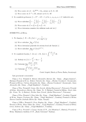 al II-lea: Alexandrescu Marian (S , c. Gimn. Nr. 3, Slatina); Premiul al III-lea: Duic˘a Julia
