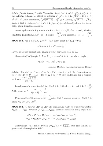 MGO 183. Fie a, b, c ∈ R, ∆ = b − 4ac, astfel ˆıncˆat a > 1, ∆ ≥ 0 s , i